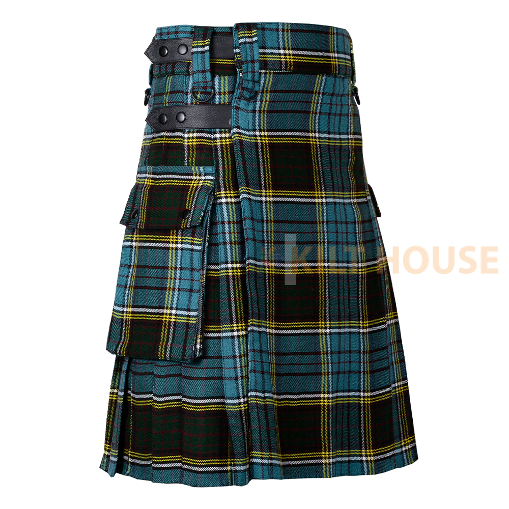 Introducing our Scottish modern utility kilt, a symbol of pride, tradition, and craftsmanship. The Scottish Anderson Tartan Kilt with modern utility features is a fashionable and functional choice for those who wish to embrace the rich Scottish heritage while enjoying the practicality of a contemporary garment. Whether for formal events, casual outings, or even everyday wear, this kilt provides a unique blend of tradition and modernity.