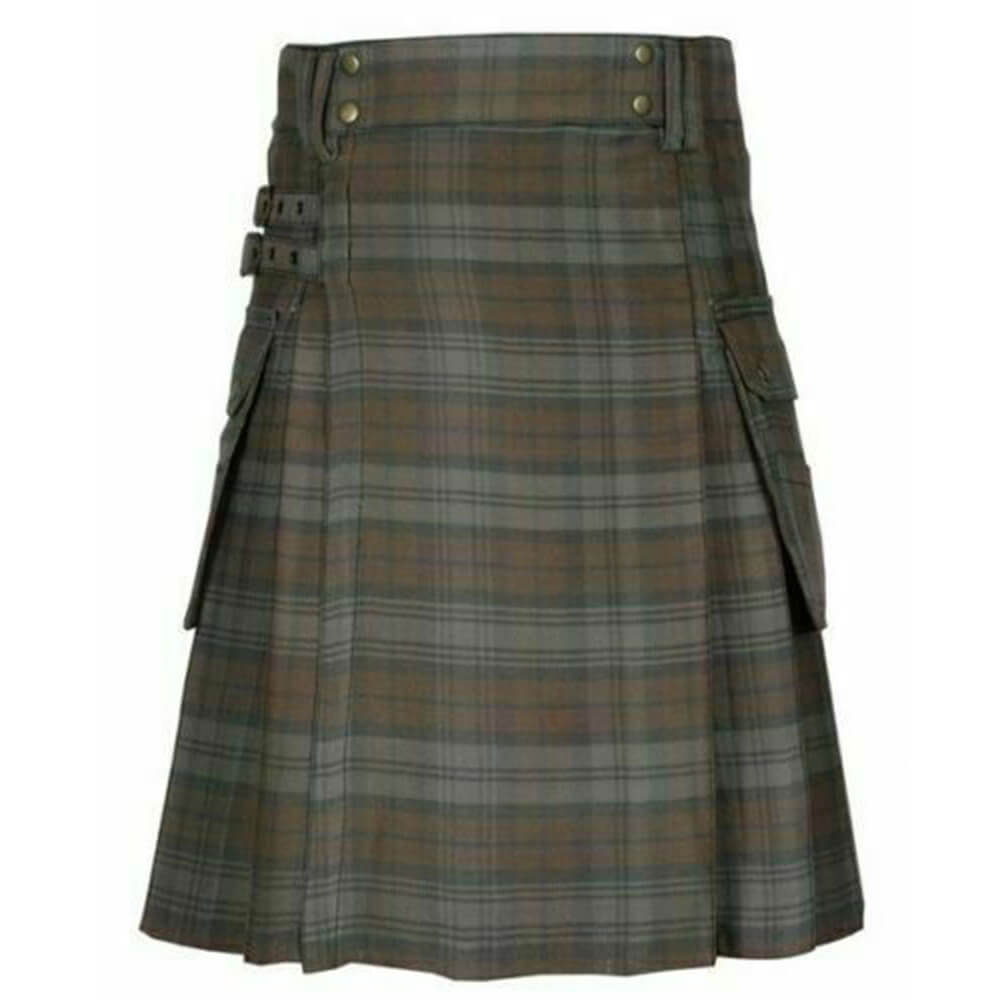 Introducing our Scottish modern utility kilt, a symbol of pride, tradition, and craftsmanship. The Scottish Black Watch Weathered Tartan Kilt with modern utility features is a fashionable and functional choice for those who wish to embrace the rich Scottish heritage while enjoying the practicality of a contemporary garment. Whether for formal events, casual outings, or even everyday wear, this kilt provides a unique blend of tradition and modernity.