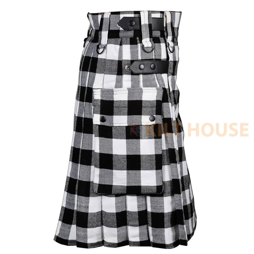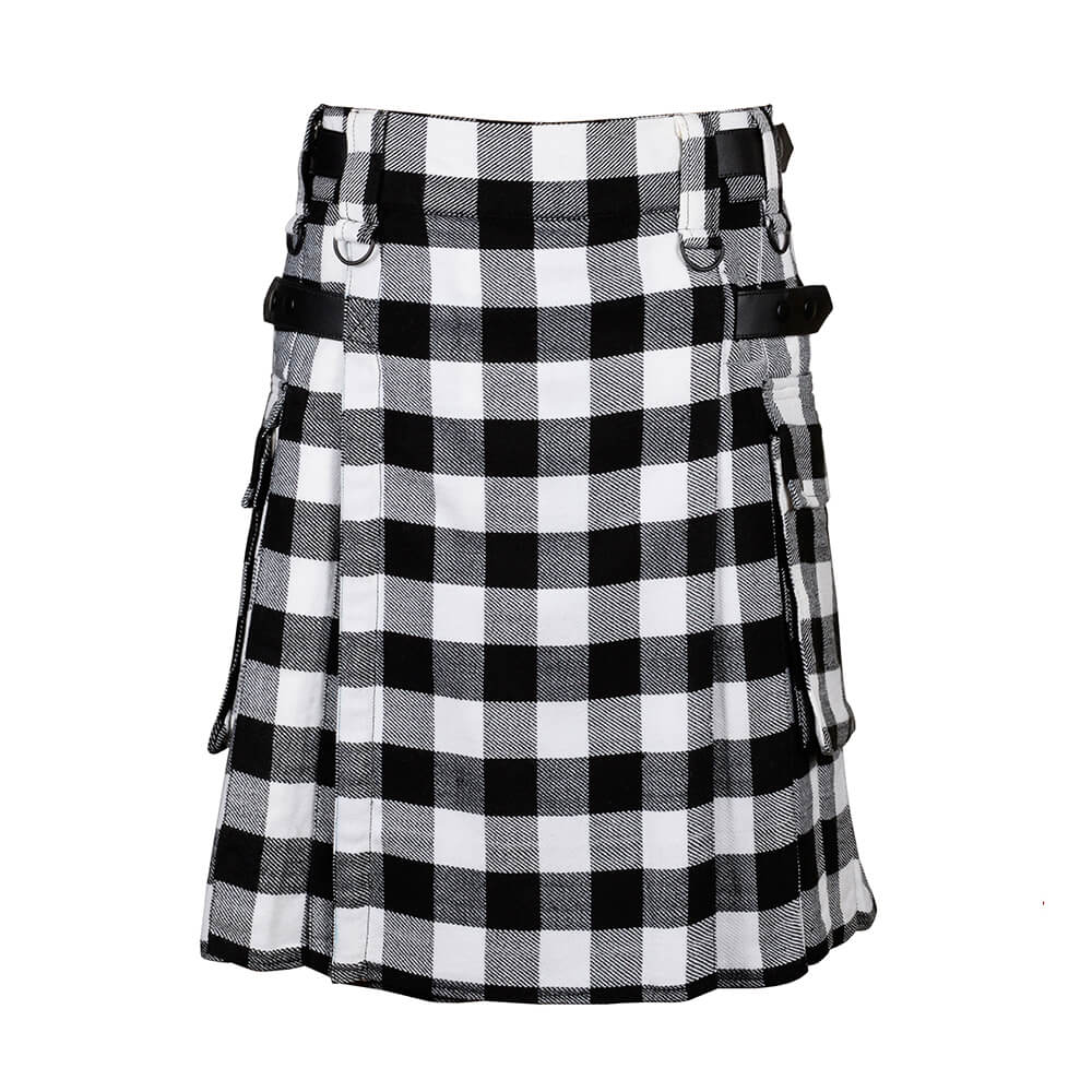 Introducing our Scottish modern utility kilt, a symbol of pride, tradition, and craftsmanship. The Scottish Black & White Rob Roy Tartan Kilt with modern utility features is a fashionable and functional choice for those who wish to embrace the rich Scottish heritage while enjoying the practicality of a contemporary garment. Whether for formal events, casual outings, or even everyday wear, this kilt provides a unique blend of tradition and modernity.