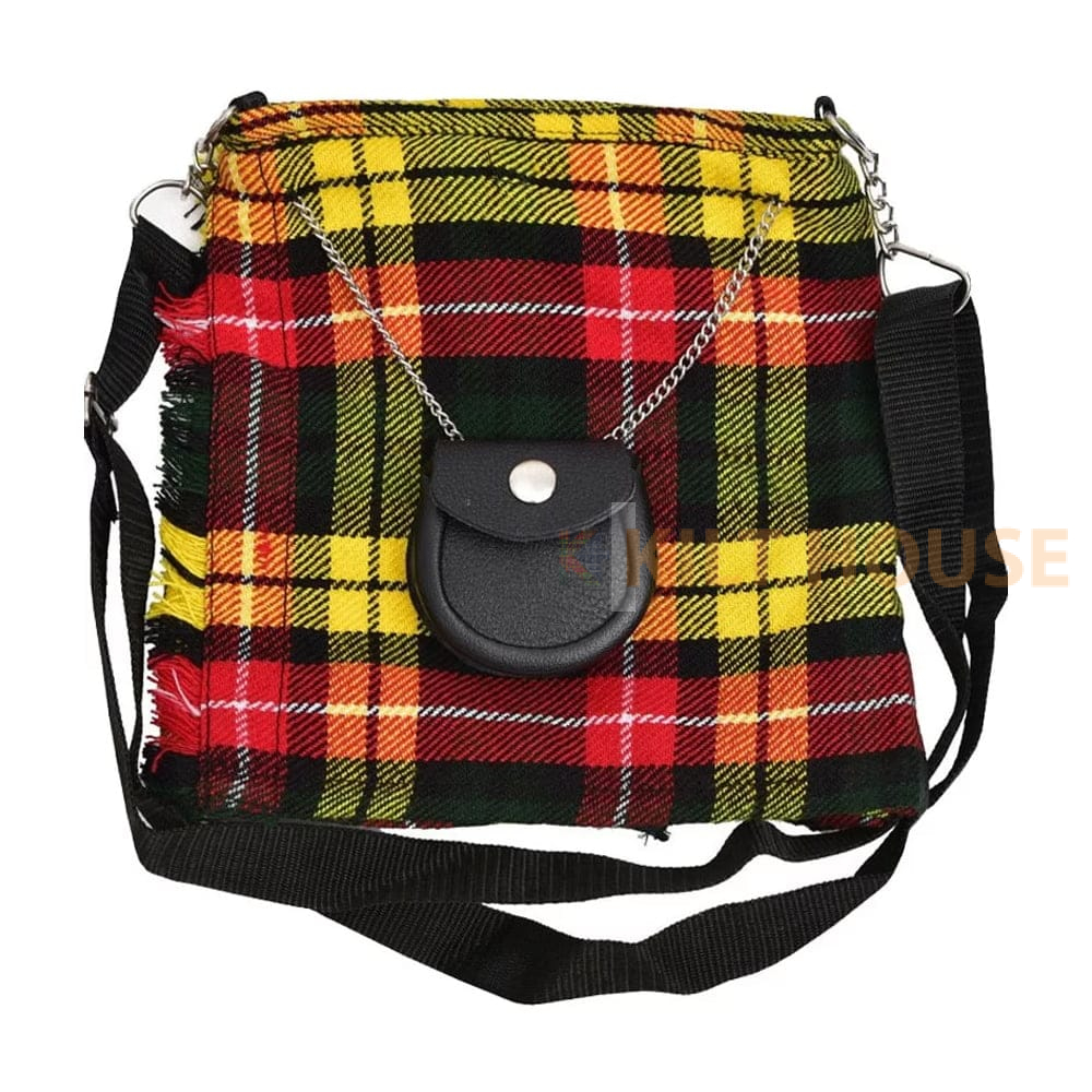 Buchanan Tartan Ladies Kilt Shaped Purse Celebrate your Scottish heritage in style with this charming Scottish Tartan Ladies Kilt Shaped Purse. Expertly crafted to resemble a traditional kilt, this unique purse combines cultural flair with everyday practicality. Made from high-quality tartan fabric, it features classic pleating and decorative details like a miniature sporran flap, belt accents, and silver-tone hardware.