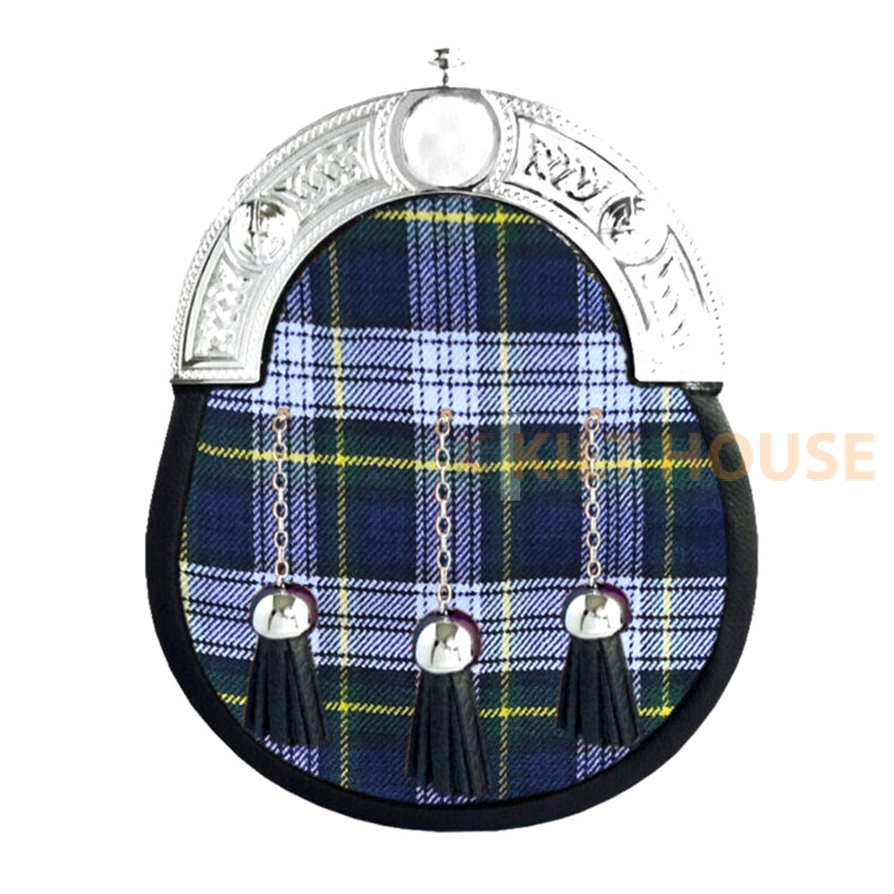 Dress Gordon Tartan Full Dress Leather Sporrans Introducing the Scottish Kilts Outfit Sporran, crafted from 100% genuine leather with a Celtic silver cantle and chain strap. This traditional Wallace Tartan kilt sporran bag embodies Scottish heritage and clan pride. The Black Watch Tartan Sporran is available in full-dress leather, featuring a customizable clan tartan on the front with three matching leather tassels. Made to order, this sporran combines premium-grade leather with a classic Scottish design, offering both value and durability. It’s an ideal accessory for both formal and informal events, perfect for those seeking quality and affordability.