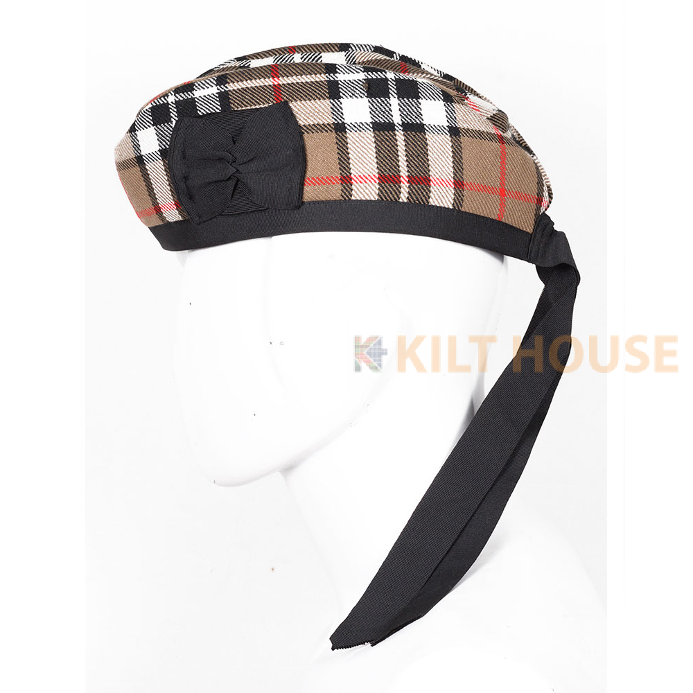 Glengarry Hat Campbell Thompson Scottish Our Glengarry bonnets are available in a variety of clan tartans & colors, each Glengarry hat is decorated with a toorie on the top, along with a rosette to the side and ribbons attached to the rear.