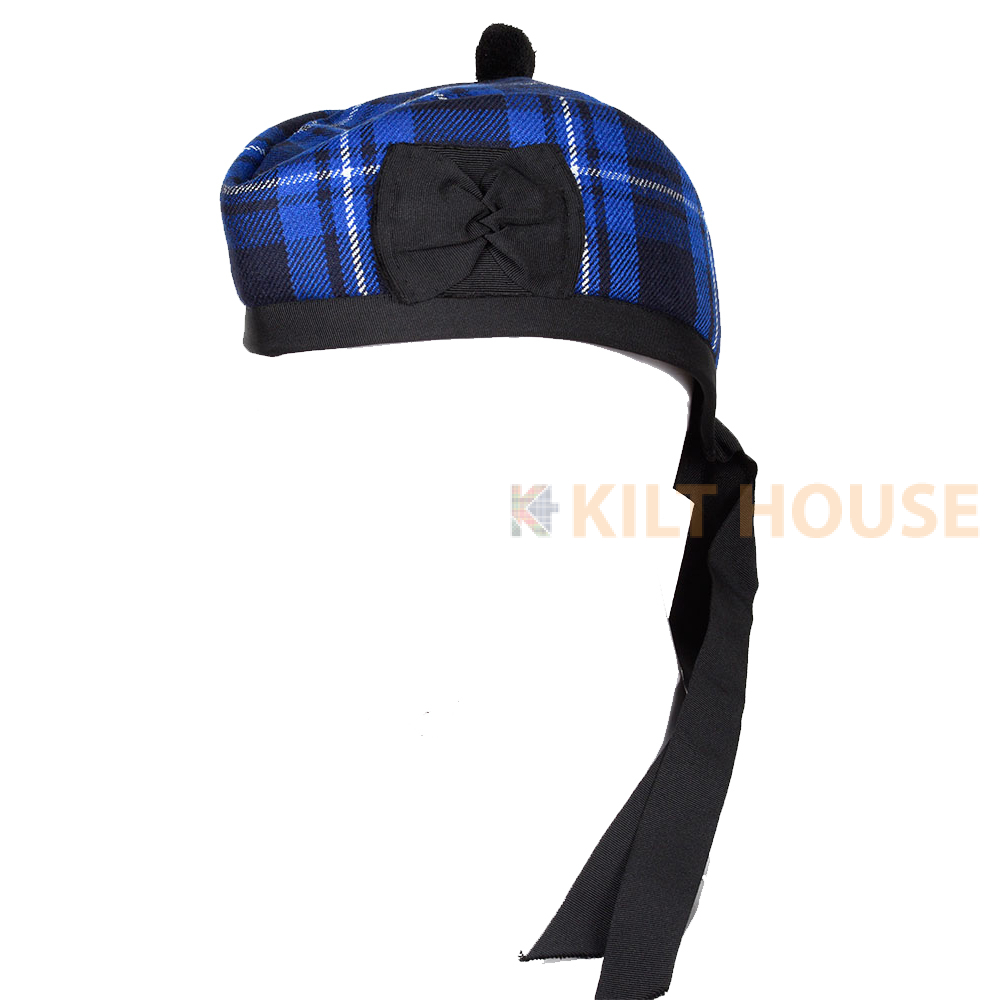 Glengarry Hat Ramsey Blue Tartan Scottish Our Glengarry bonnets are available in a variety of clan tartans & colors, each Glengarry hat is decorated with a toorie on the top, along with a rosette to the side and ribbons attached to the rear.