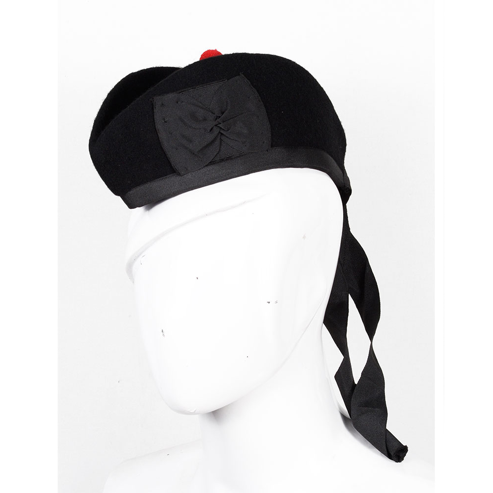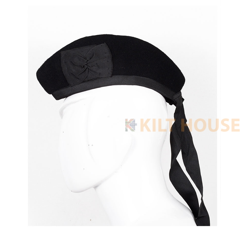 Glengarry Hat Solid Black Tartan Scottish Our Glengarry bonnets are available in a variety of clan tartans & colors, each Glengarry hat is decorated with a toorie on the top, along with a rosette to the side and ribbons attached to the rear.