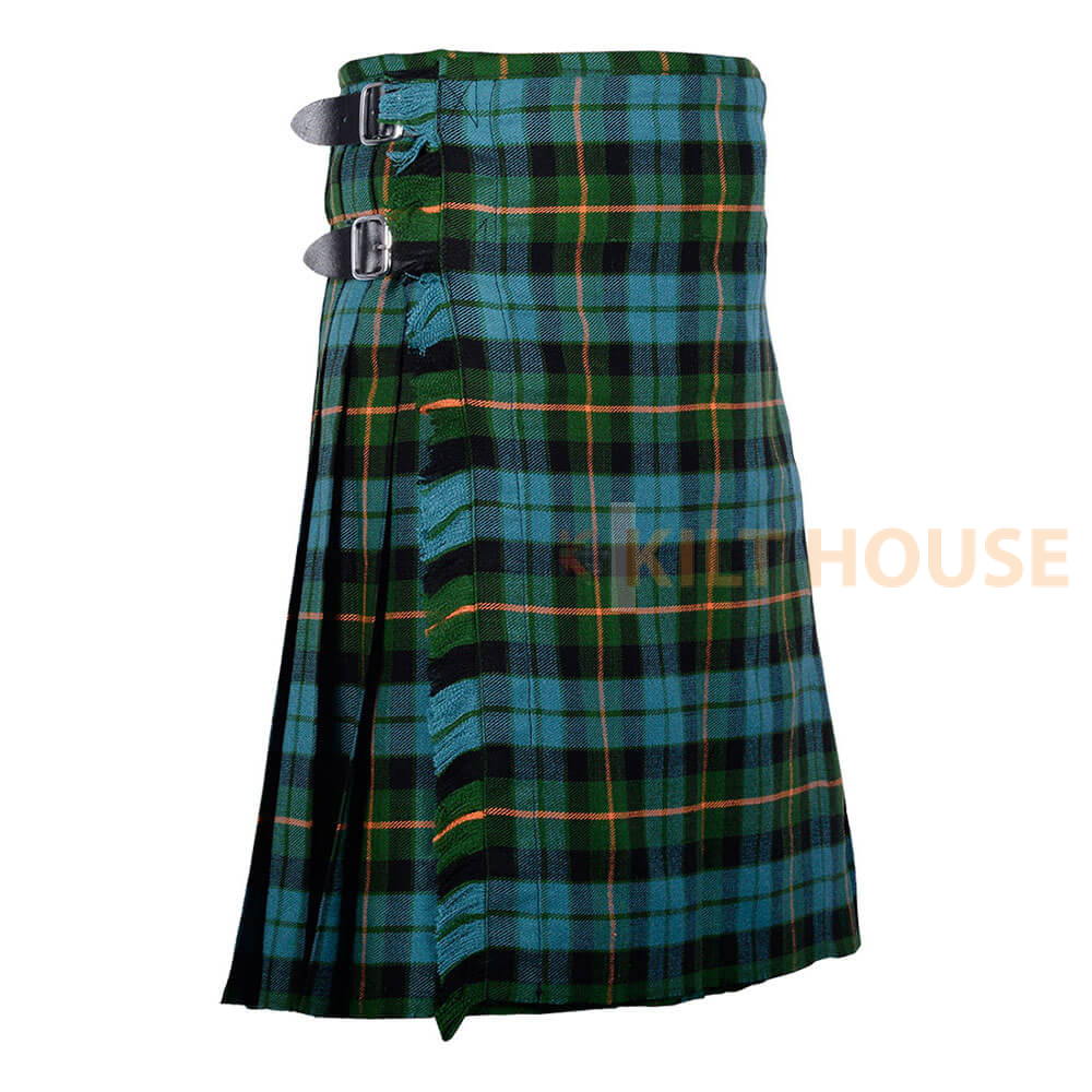Gunn Ancient Tartan 8 Yard Kilt for Men Traditional Scottish Kilt. Traditional 8-yard tartan highlander kilt is a knee-length garment made of wool tartan. It is typically made with 8 yards of fabric, which is pleated and folded to create its distinctive shape.