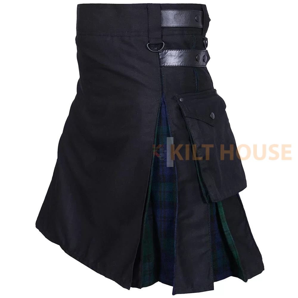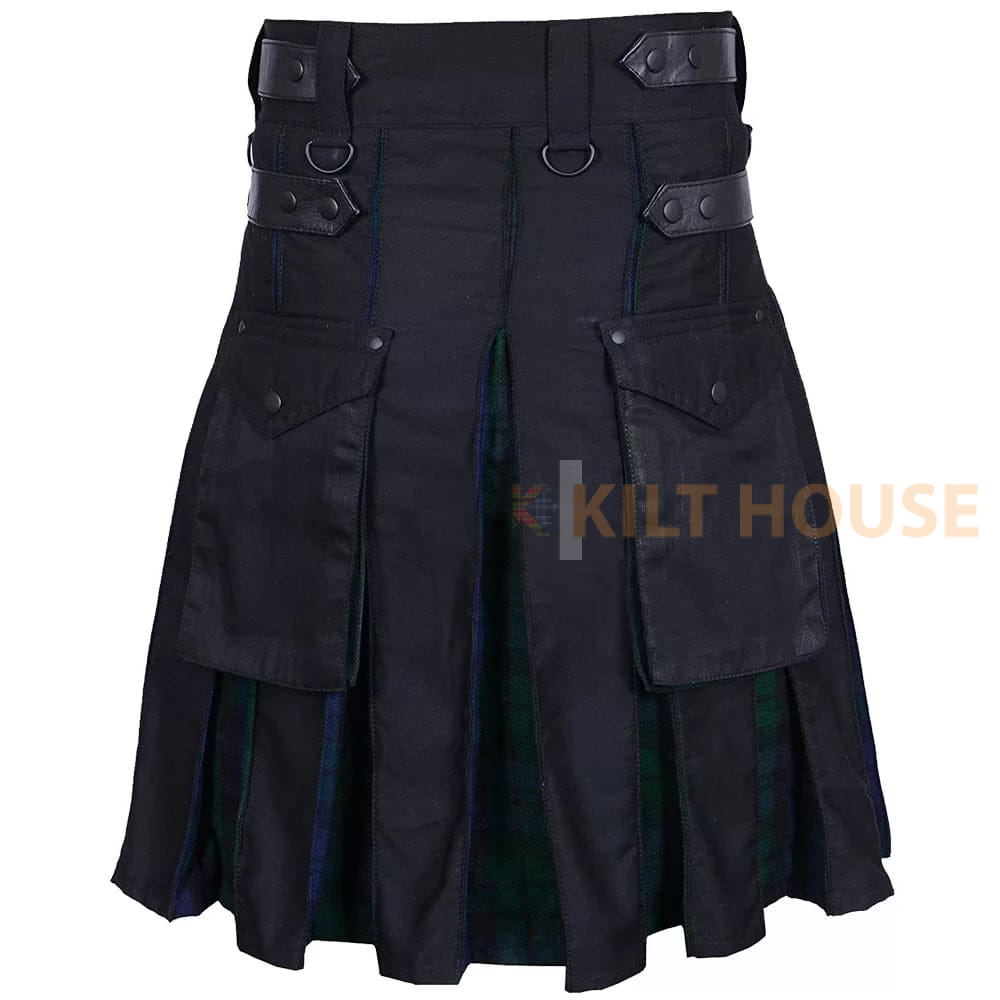 Hybrid Kilt Black Watch & Black Cotton Utility – Rugged Style Meets Highland Heritage