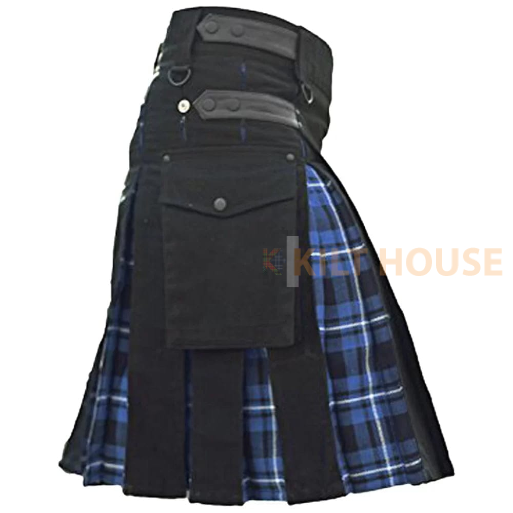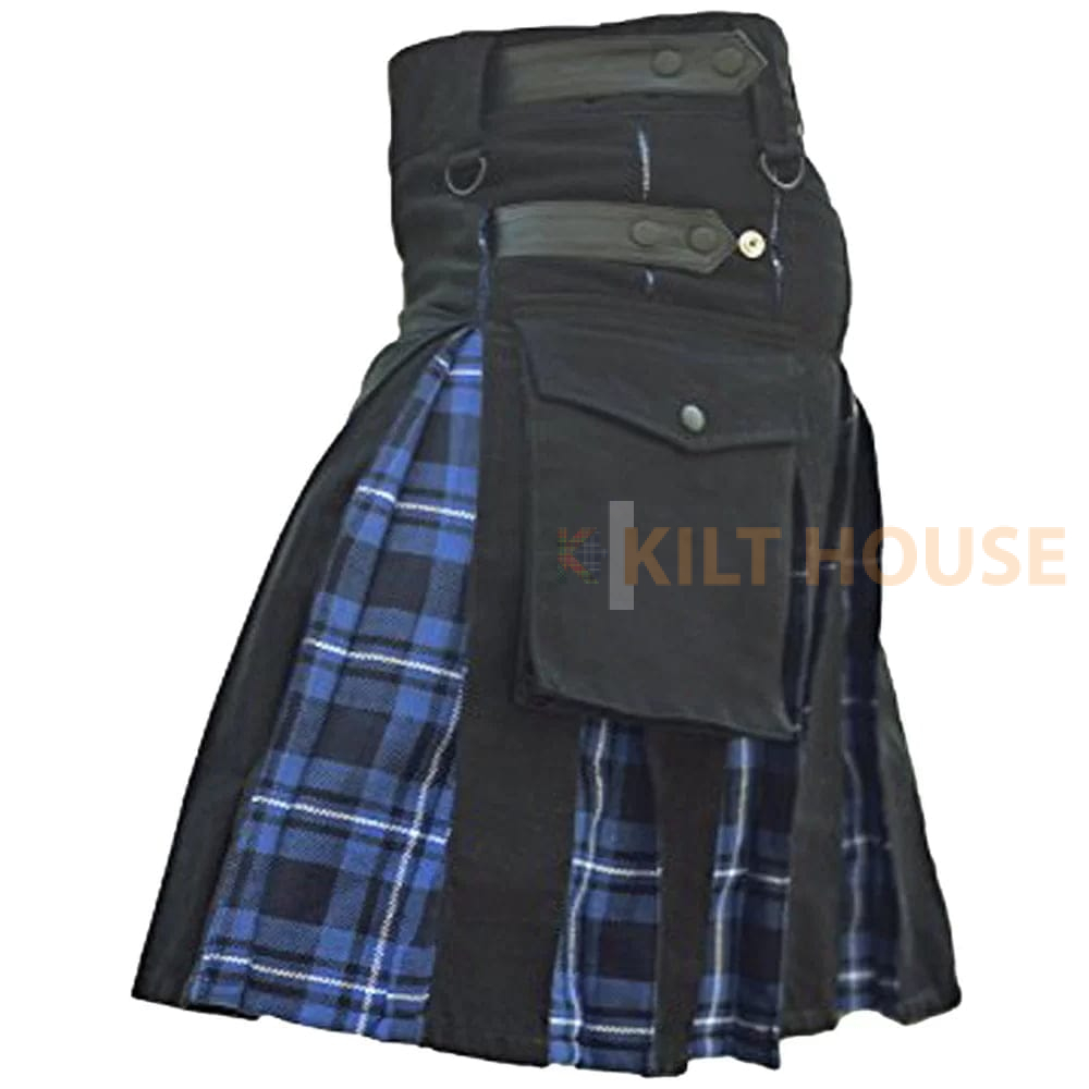 Hybrid Kilt Ramsey Blue & Black Cotton Utility – Rugged Style Meets Highland Heritage