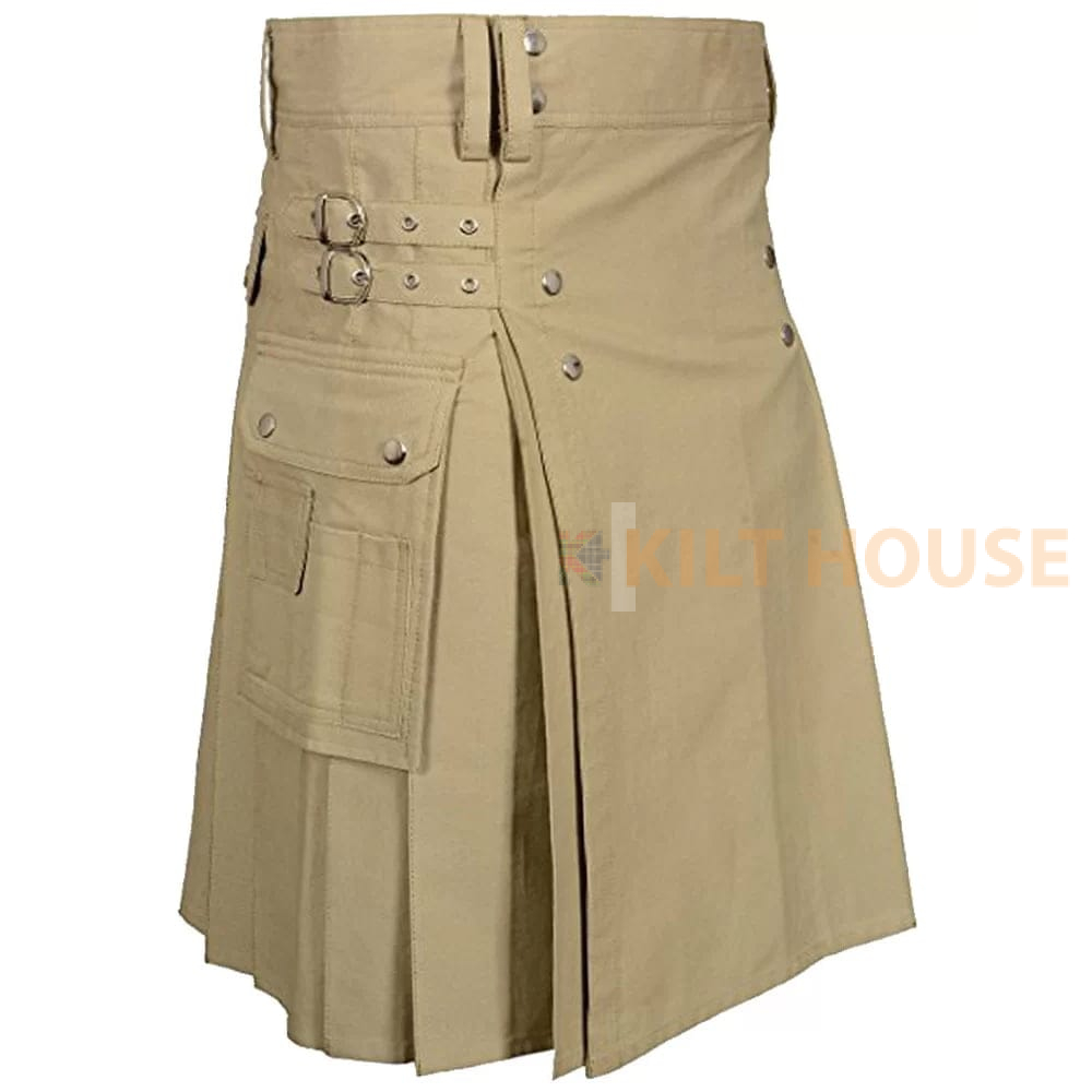 Khaki Cotton Utility Kilt with front Buttons – Comfort Meets Functionality