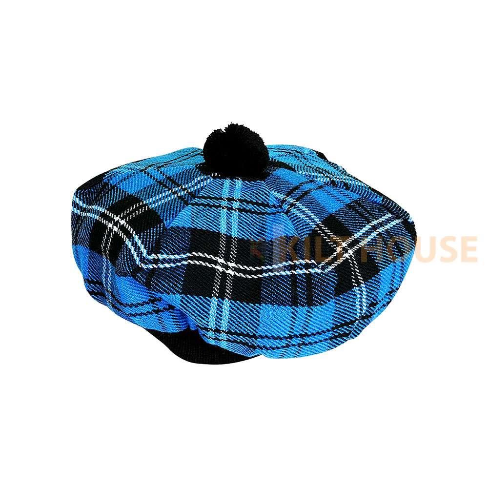 Available in more than 100 clan tartans with express delivery worldwide, this Scottish bonnet will a great add to your kilt and heritage wardrobe. Made of acrylic fabric, our hats are soft, cosy and have a matching elasticated wool headband and pom pom, our Tammie hats have a satin type lining inside the tam. You can also pair your tam o’ shanter with one of our tartan scarfs or fly plaid for a truly Scottish look.