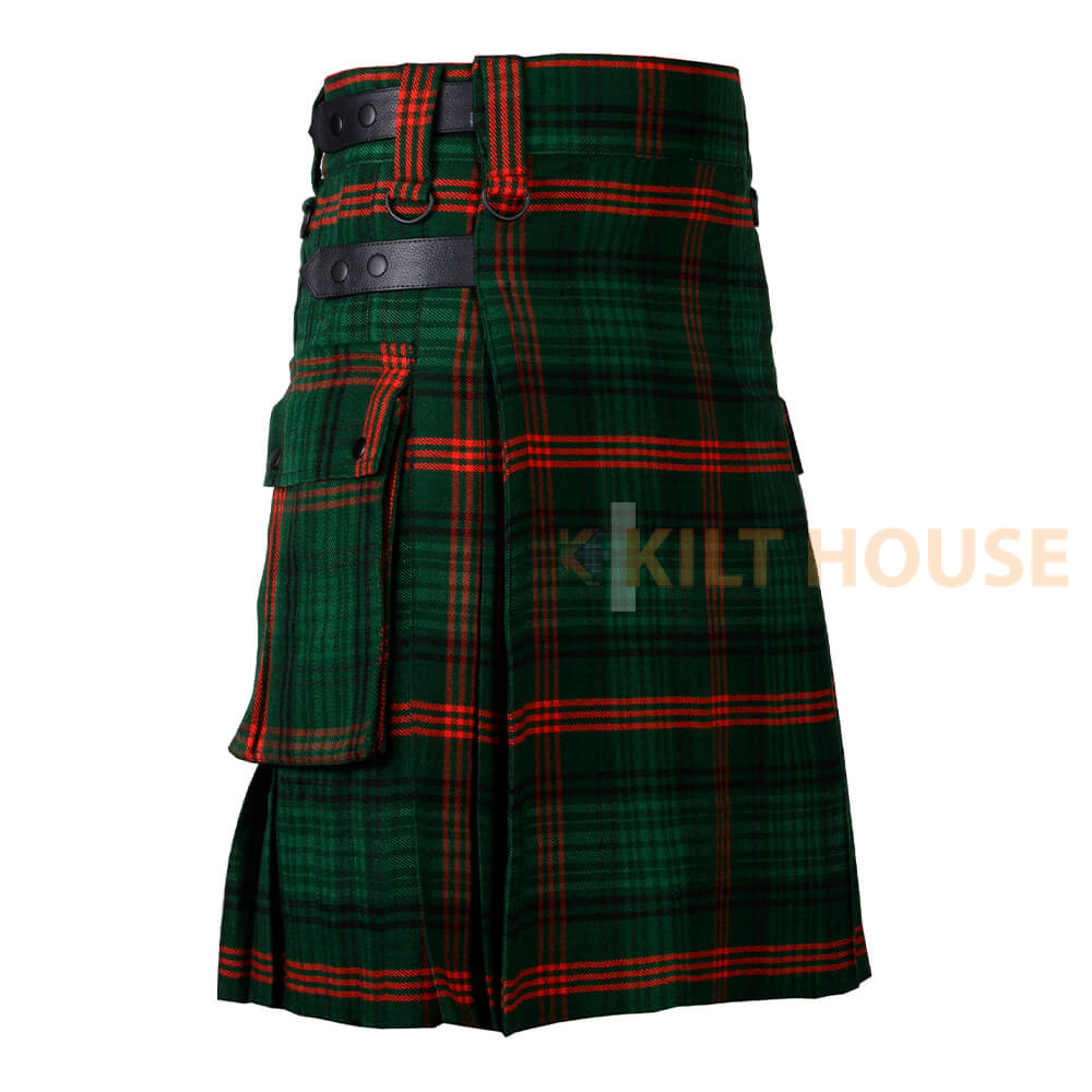 Introducing our Scottish modern utility kilt, a symbol of pride, tradition, and craftsmanship. The Scottish Ross Hunting Modern Tartan Kilt with modern utility features is a fashionable and functional choice for those who wish to embrace the rich Scottish heritage while enjoying the practicality of a contemporary garment. Whether for formal events, casual outings, or even everyday wear, this kilt provides a unique blend of tradition and modernity.