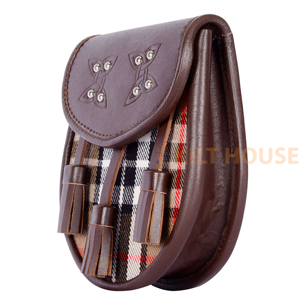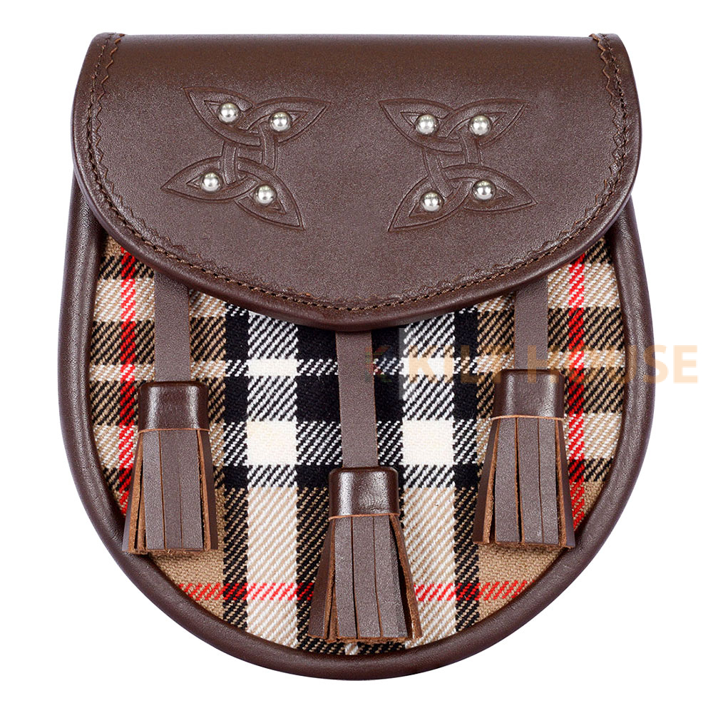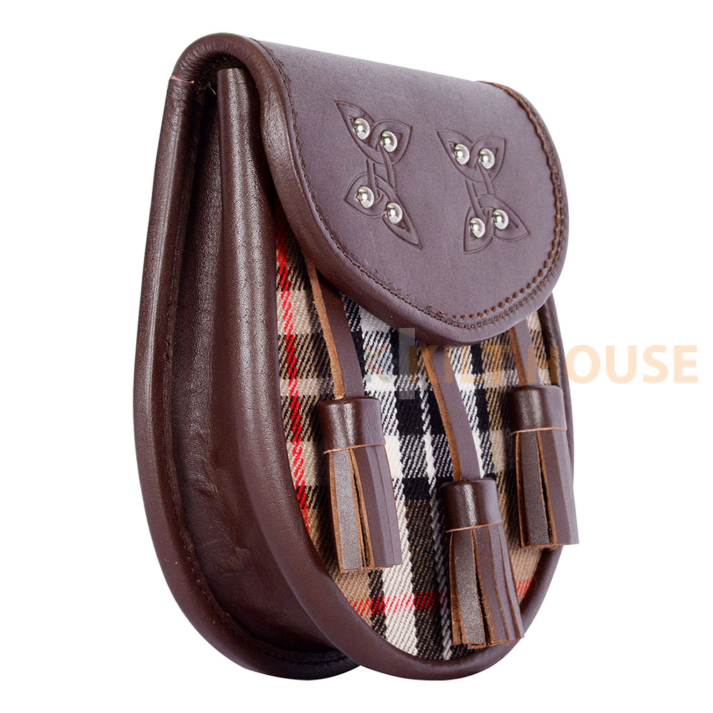 Scottish Sporran Camel Thomson Tartan Brown Leather