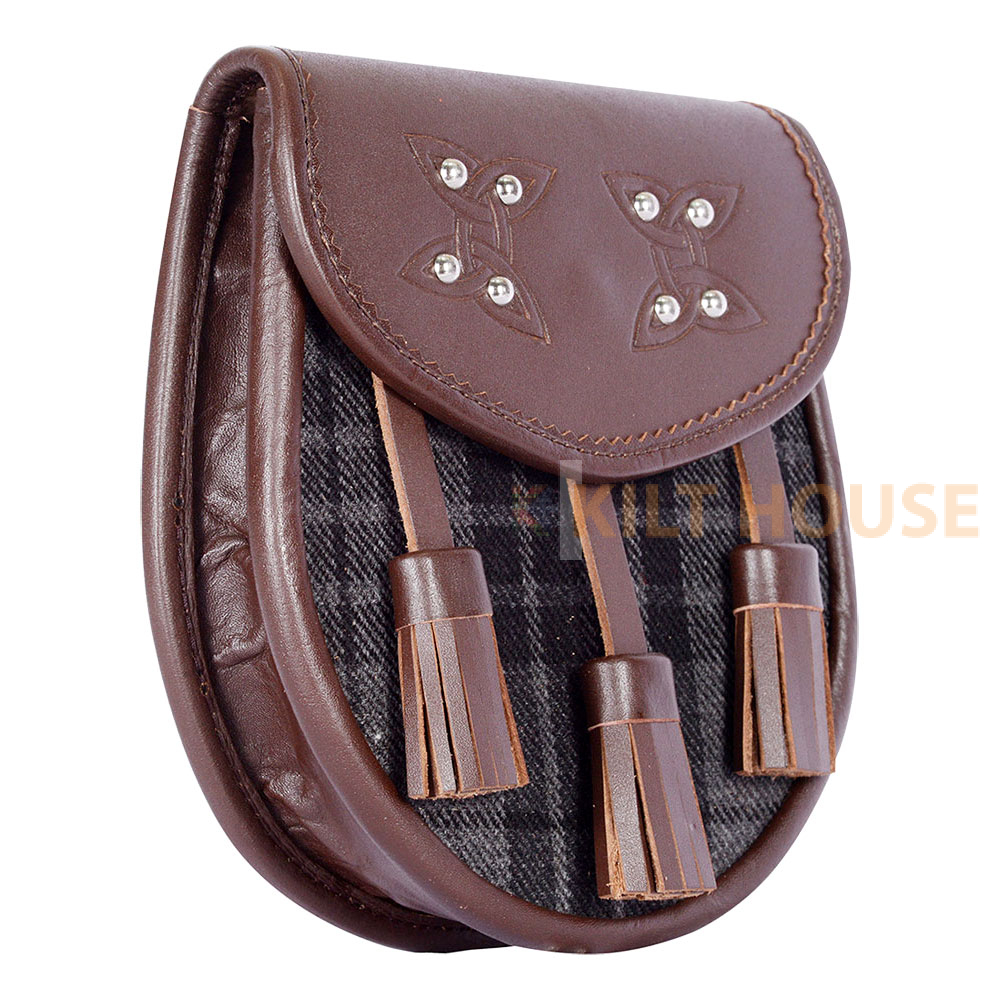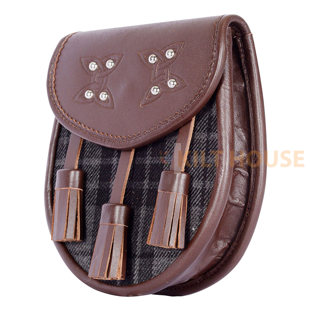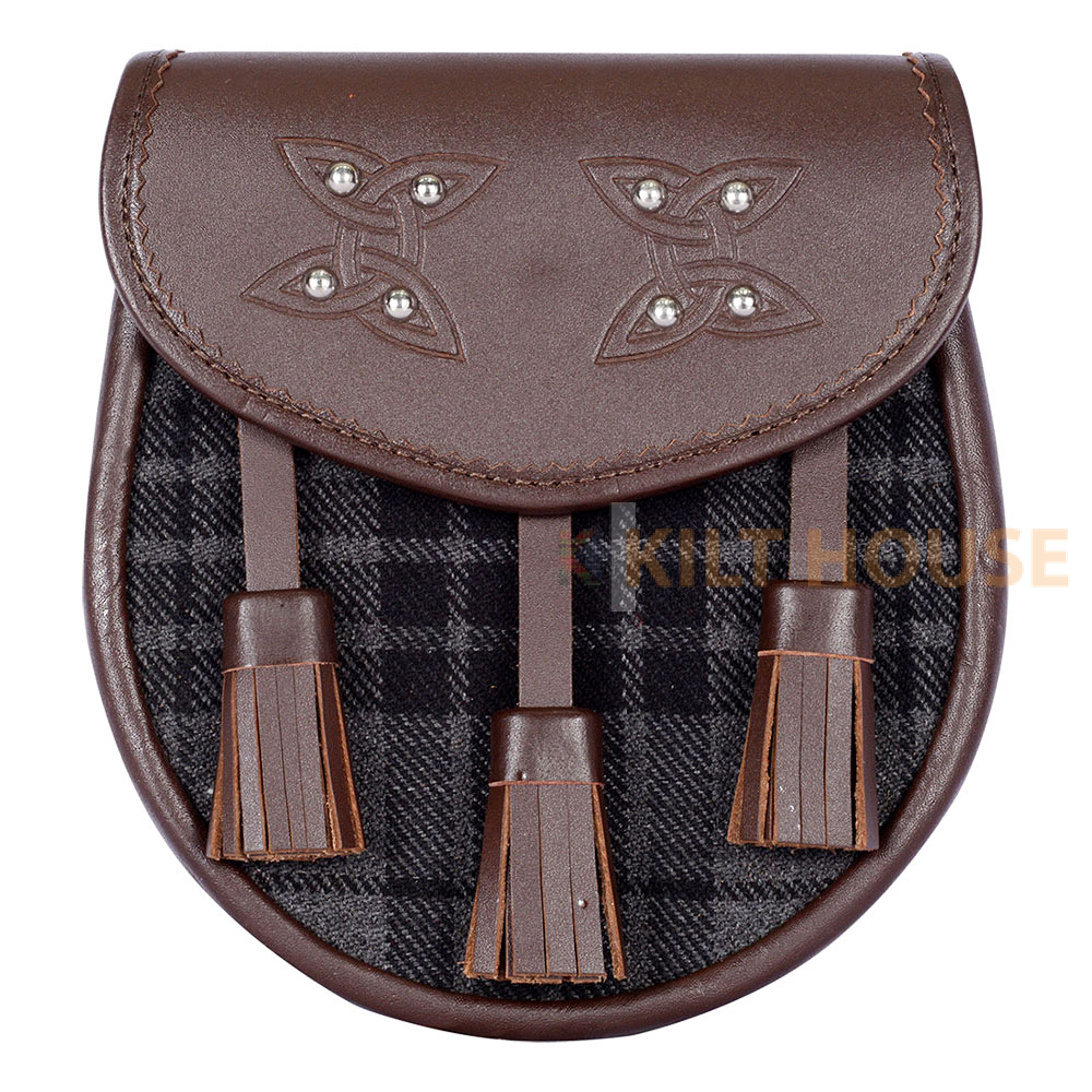 Scottish Sporran Grey Watch Tartan Brown Leather