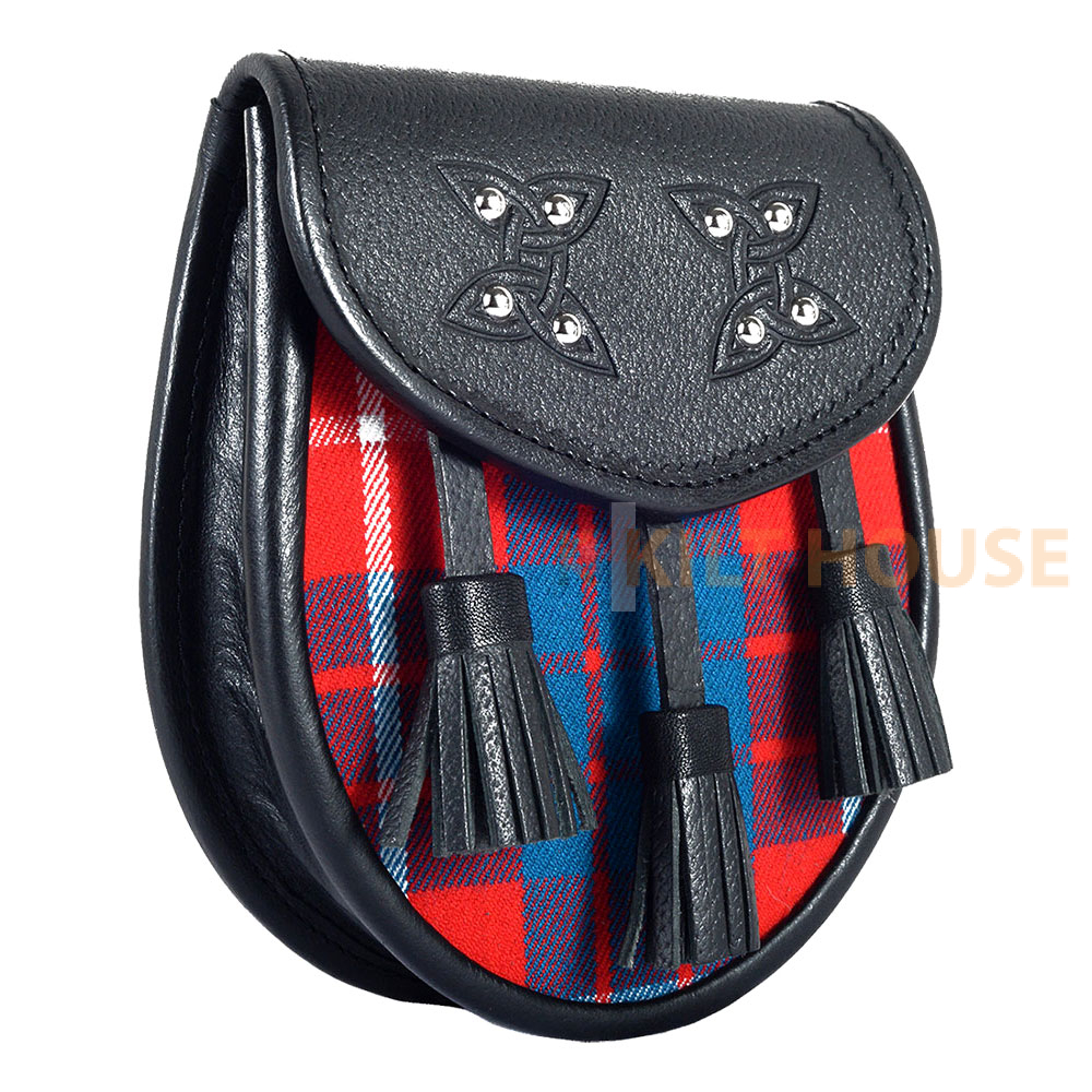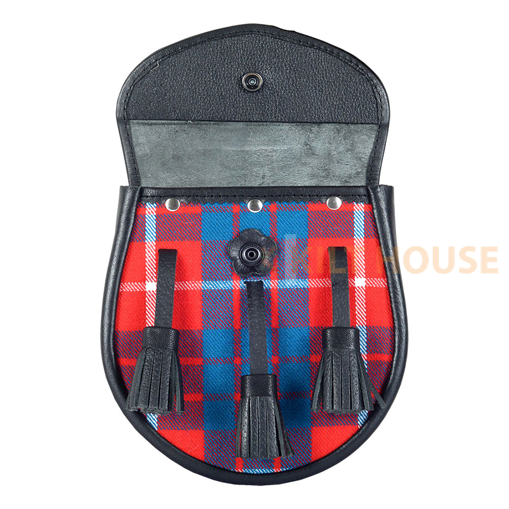 Scottish Sporran Hamilton Red Tartan Black Leather