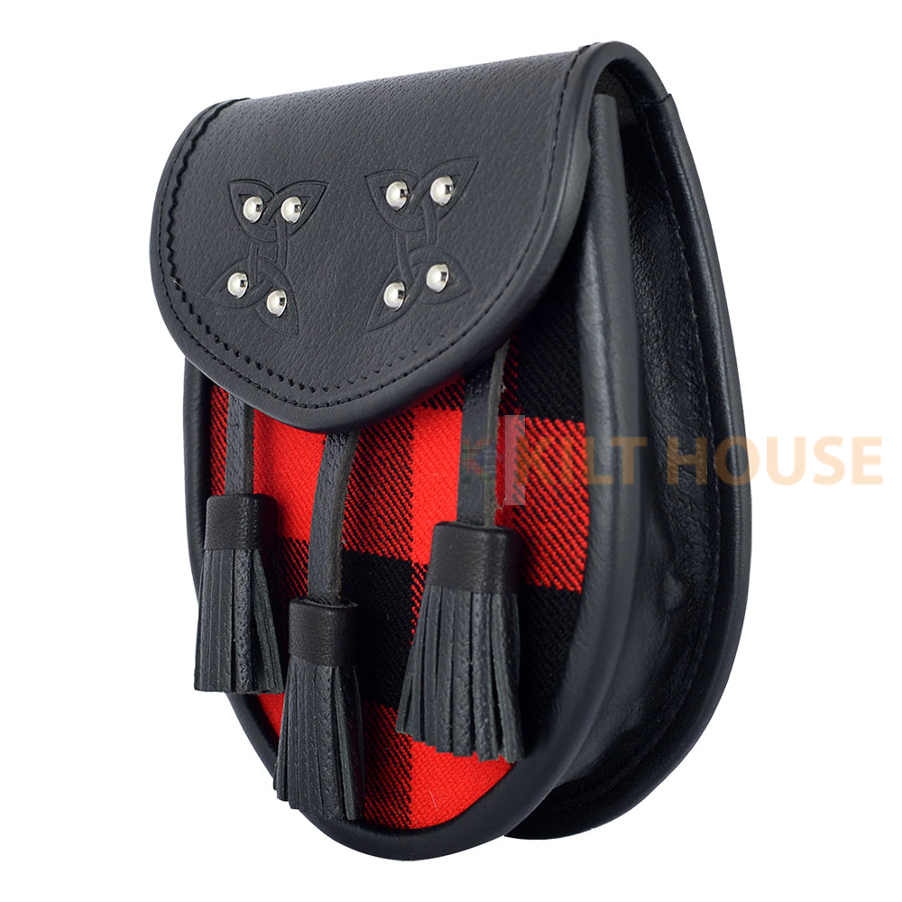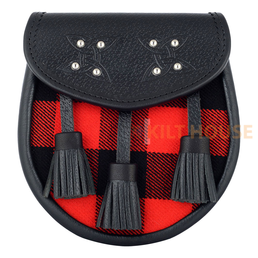 Scottish Sporran McGregor Rob Roy Tartan Black Leather