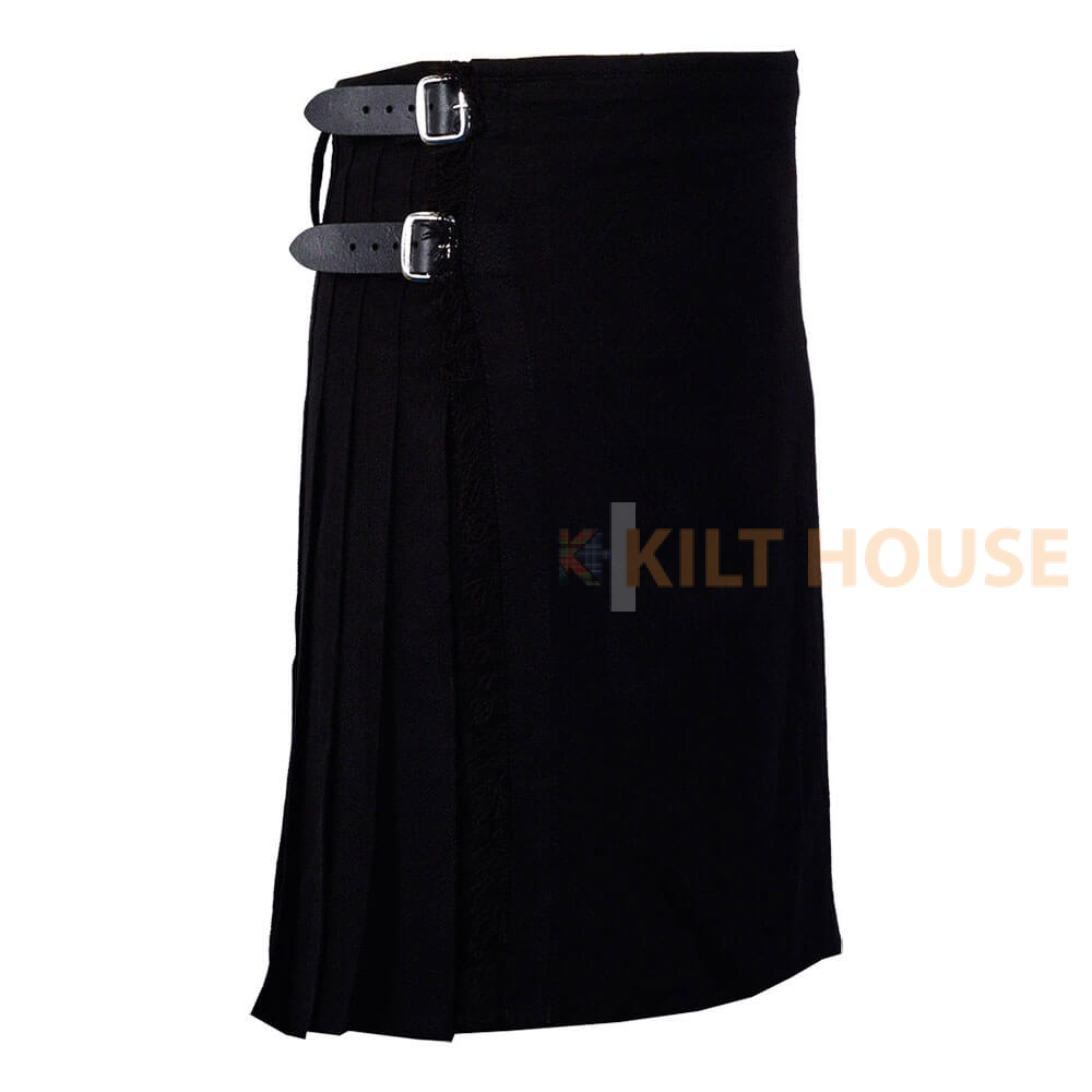 Solid Black Tartan 8 Yard Kilt for Men Traditional Scottish Kilt. Traditional 8-yard tartan highlander kilt is a knee-length garment made of wool tartan. It is typically made with 8 yards of fabric, which is pleated and folded to create its distinctive shape.