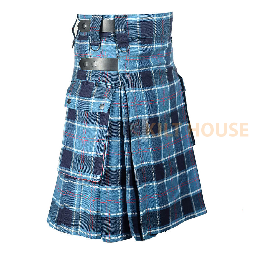 Introducing our Scottish modern utility kilt, a symbol of pride, tradition, and craftsmanship. The Scottish US Navy Tartan Kilt with modern utility features is a fashionable and functional choice for those who wish to embrace the rich Scottish heritage while enjoying the practicality of a contemporary garment. Whether for formal events, casual outings, or even everyday wear, this kilt provides a unique blend of tradition and modernity.