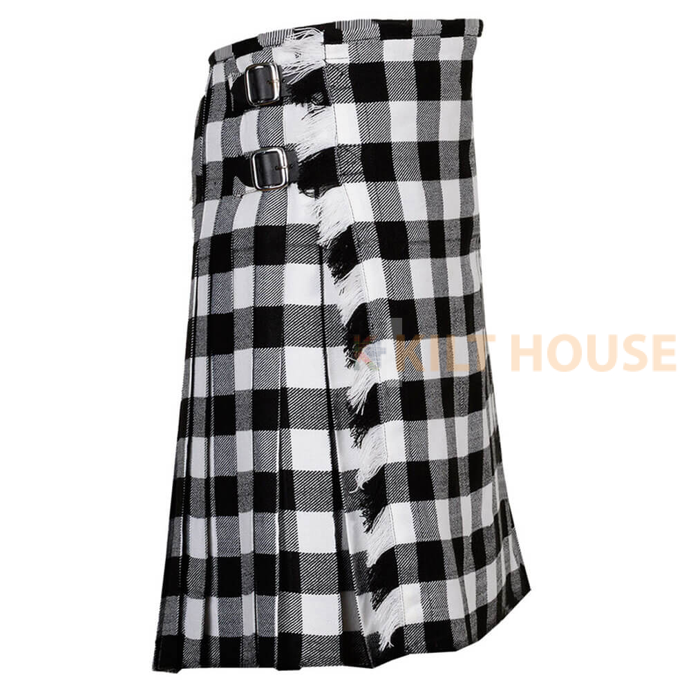White Black Rob Roy Tartan 8 Yard Kilt for Men. Traditional 8-yard tartan highlander kilt is a knee-length garment made of wool tartan. It is typically made with 8 yards of fabric, which is pleated and folded to create its distinctive shape.
